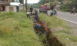 Semangat Gotong Royong Babinsa Koramil 1418-02/Tapalang Bersama Warga Bersihkan Saluran Air