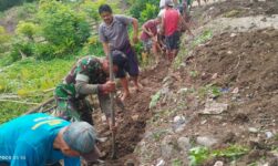 Babinsa Koramil 1418-02/Tapalang dan Warga Desa Lebani Bersihkan Jalan Tani untuk Jaga Kebersihan Lingkungan