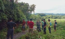 Babinsa Koramil 1418-05/Kalumpang Gelar Karya Bakti Bersihkan Jalan Di Desa Battuada