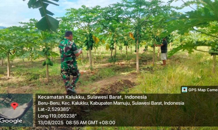 Seputar Sulbar, Mamuju – Dalam upaya mendukung program ketahanan pangan daerah, Babinsa Koramil 1418-03/Kalukku aktif melaksanakan perawatan intensif tanaman cabai dan pepaya di lahan Korem, yang berlokasi di Dusun Taraweh, Desa Beru-beru, Kecamatan Kalukku, Kabupaten Mamuju. Rabu (13/8/2025).