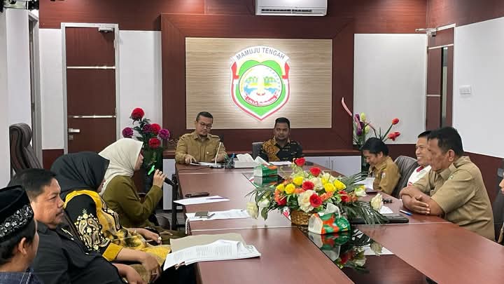 Seputar Sulbar, Mamuju : Ketua DPRD Provinsi Sulawesi Barat, Dr. Hj. Amalia Fitri bersama Tim Panitia Khusus (Pansus) DPRD Sulbar diantaranya Khalil Qibran, I Putu Suardana, Saddam, Sulfakhri Sultan, Yudiaman Firusdi, Murniati dan Reski Irmayani Mappigau serta OPD yang hadir diantaranya Dinas Kesahatan, Dinas Pemberdayaan Perempuan, PA dan KB dan Ketahanan Pangan melaksanakan kunjungan kerja ke Kantor Bupati Mamuju Tengah dalam rangka membahas Rancangan Peraturan Daerah (Ranperda) tentang Peningkatan Gizi Masyarakat, 25 Maret 2025.
