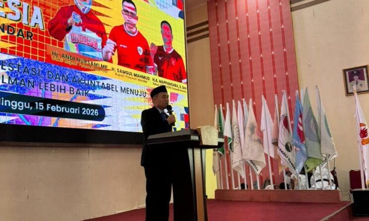 Seputar Sulbar, Polman – Jajaran pengurus Komite Olahraga Nasional Indonesia (KONI) Kabupaten Polewali Mandar (Polman), Sulawesi Barat, periode 2025-2029 resmi dikukuhkan pada Minggu (15/2/2026).