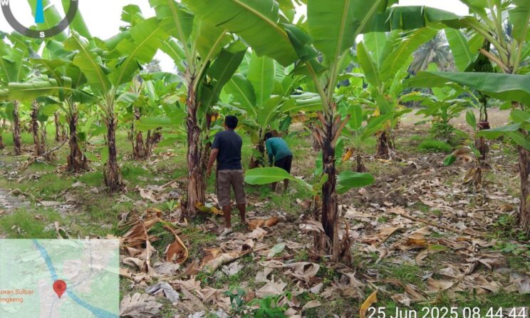 Seputar Sulbar, Mamuju — Dalam rangka mendukung program ketahanan pangan nasional, personel Koramil 1418-03/Kalukku melaksanakan kegiatan pembersihan dan perawatan tanaman pisang Cavendish serta pepaya yang berada di lahan Kodim 1418/Mamuju, tepatnya di Dusun Taraweh, Desa Beru-beru, Kecamatan Kalukku, Kabupaten Mamuju. Rabu (25/6/2025).