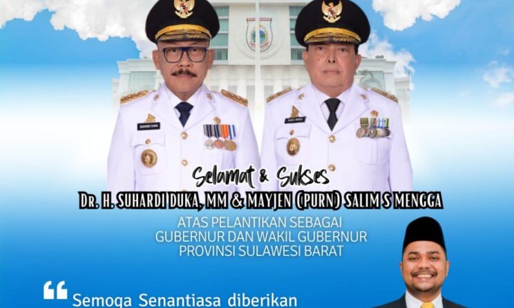 Seputar Sulbar, Mamuju : Anggota Komisi II DPRD Sulbar, M. Khalil Gibran mengucapkan selamat dan sukses, atas dilantiknya Gubernur dan Wakil Gubernur Sulawesi Barat (Sulbar) periode 2024-2029, Dr. H. Suhardi Duka dan Mayjen TNI ( Purn ) Salim S Mengga.