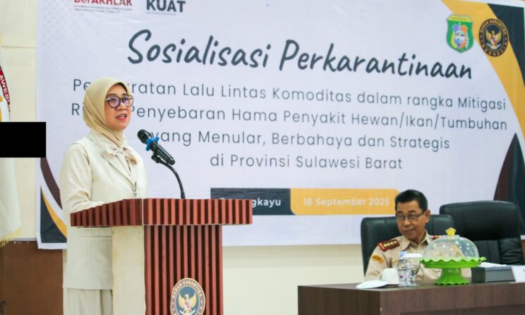Seputar Sulbar, Pasangkayu – Wakil Bupati Pasangkayu, Dr. Hj Herny Agus, S.sos, M,Si menghadiri serta membuka sosialisasi perkarantinaan yang yang digelar Balai Karantina Hewan, Ikan, dan Tumbuhan Sulawesi Barat di Aula Hotel Mutiara Pasangkayu, Kamis (18/9/2025).