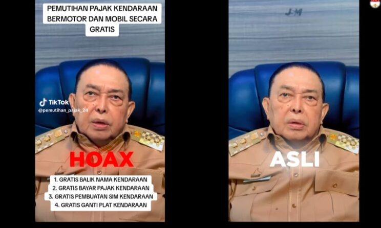 Video yang viral di media sosial, khususnya dari akun TikTok @pemutihan_pajak_2025, menampilkan Wagub Salim seolah-olah mengumumkan program perpajakan palsu. Dalam video tersebut, disebutkan empat poin utama: gratis balik nama kendaraan, gratis bayar pajak kendaraan, gratis pembuatan SIM, dan gratis ganti plat kendaraan.